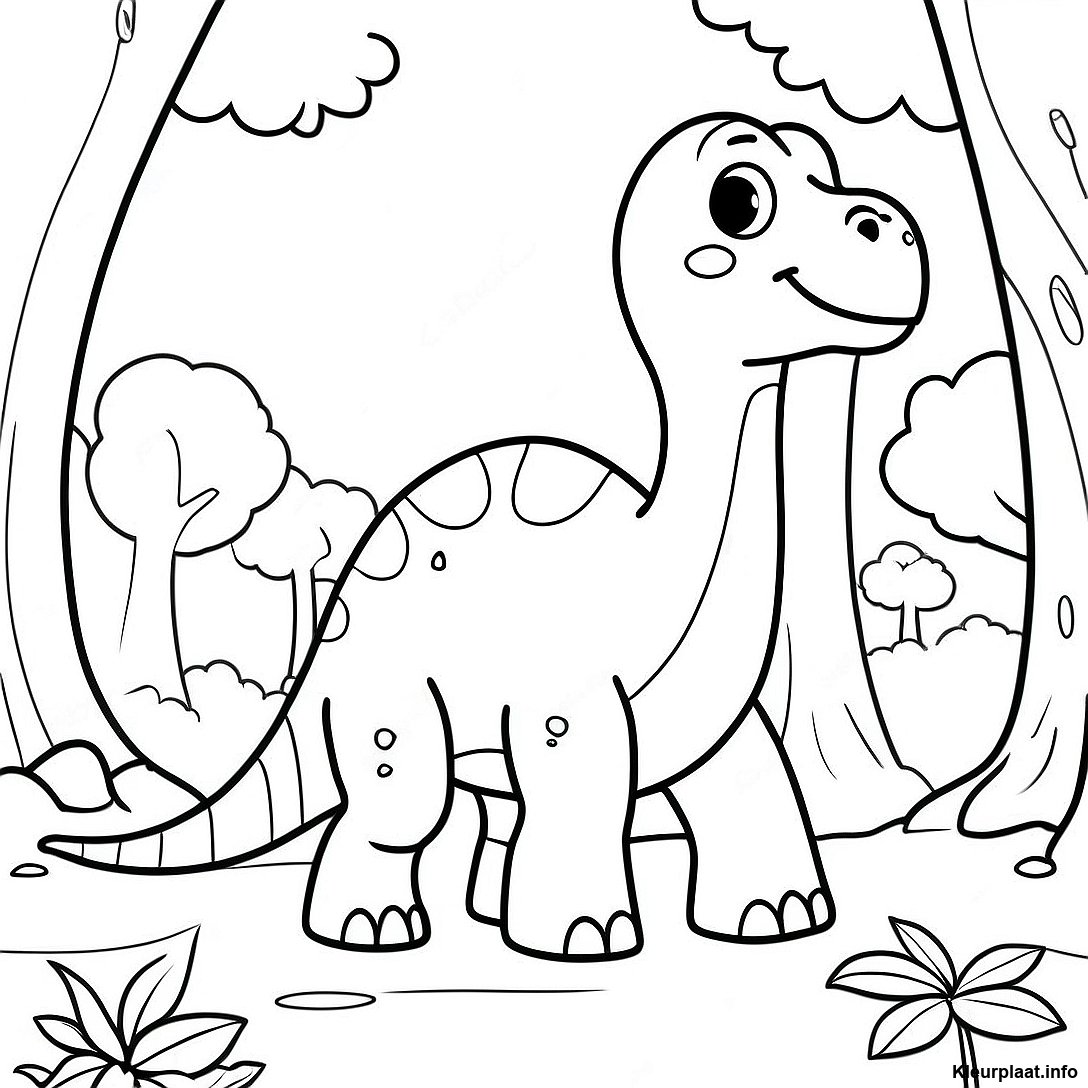 Schattige Brontosaurus In Een Bos Kleurplaat