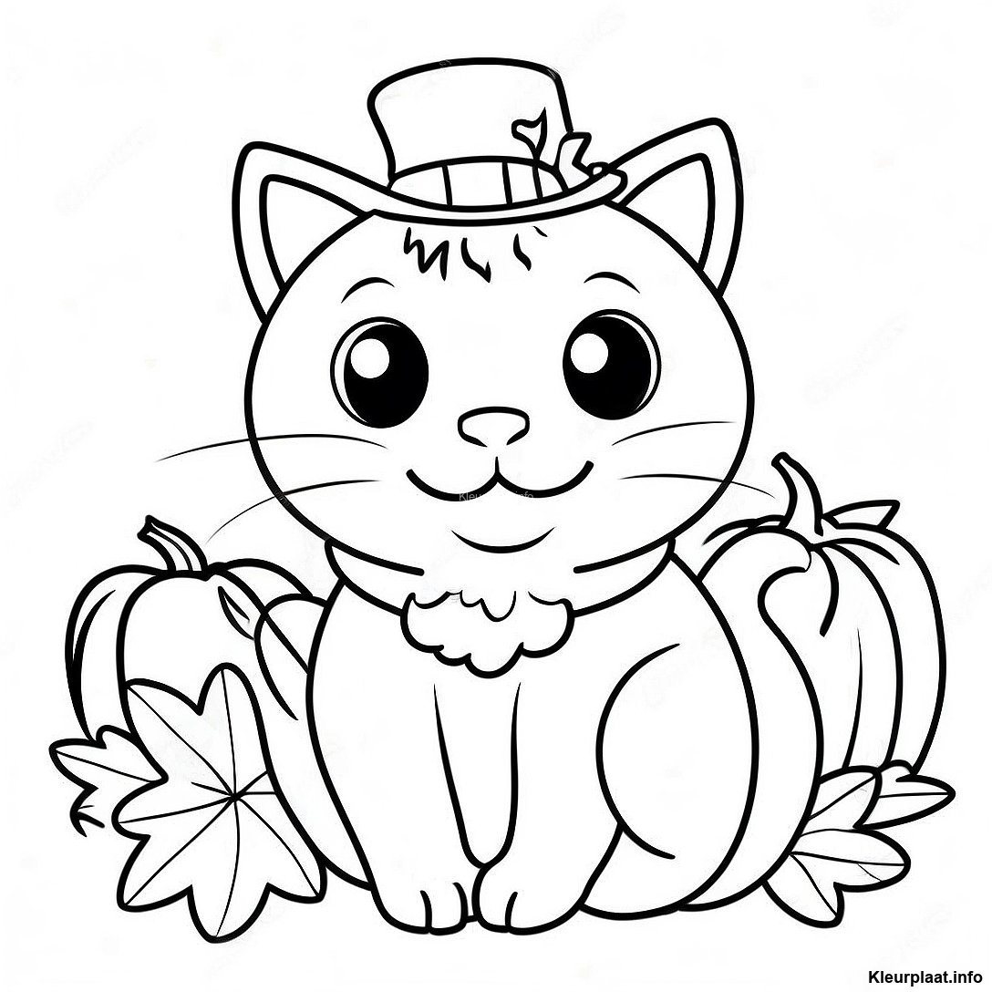 Schattige Dankgiving Kat Met Pompoen Kleurplaat 136772 68325