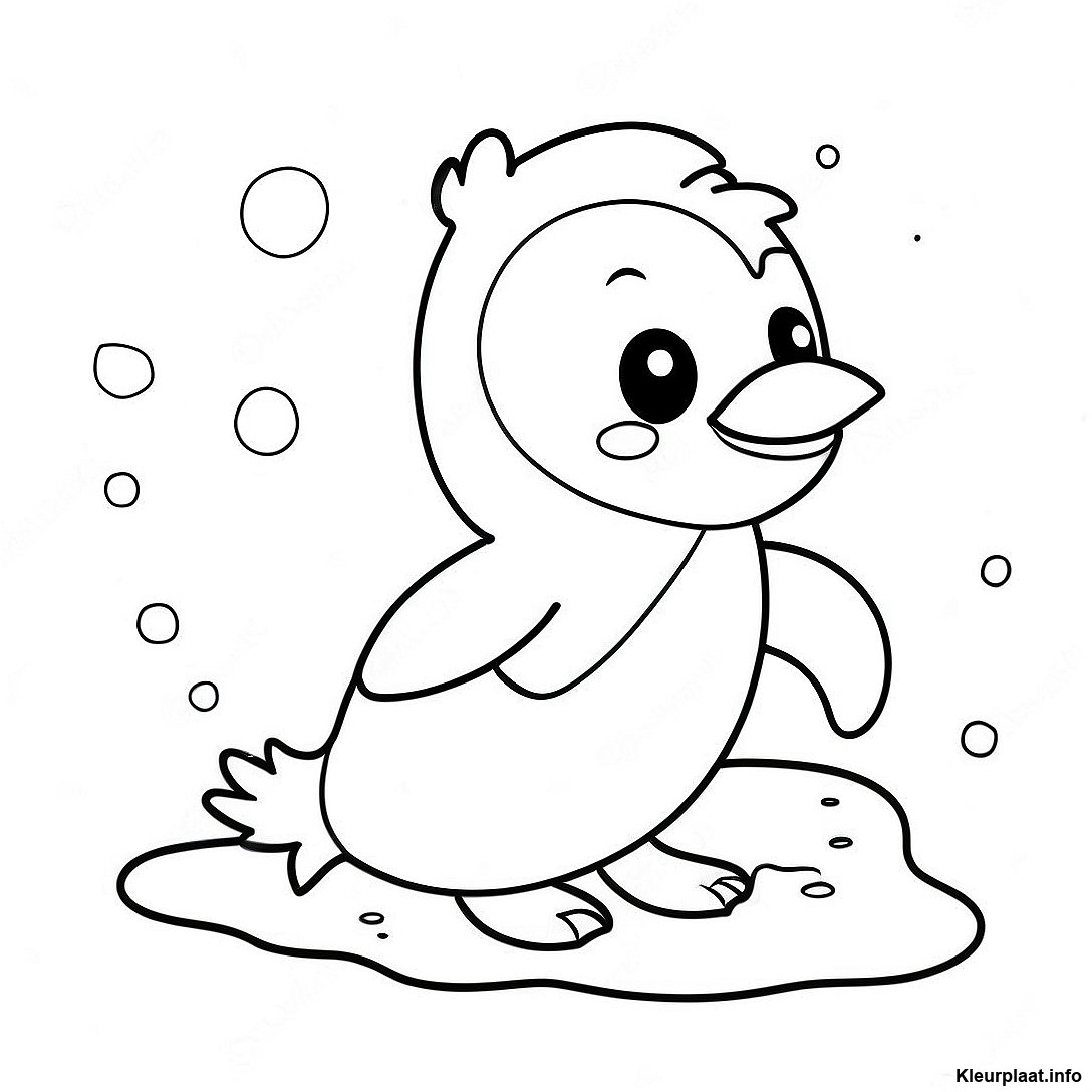 Download Afdrukbare PDF van Schattige Kleurplaat Van Een Pinguïn Die Op Ijs Glijdt