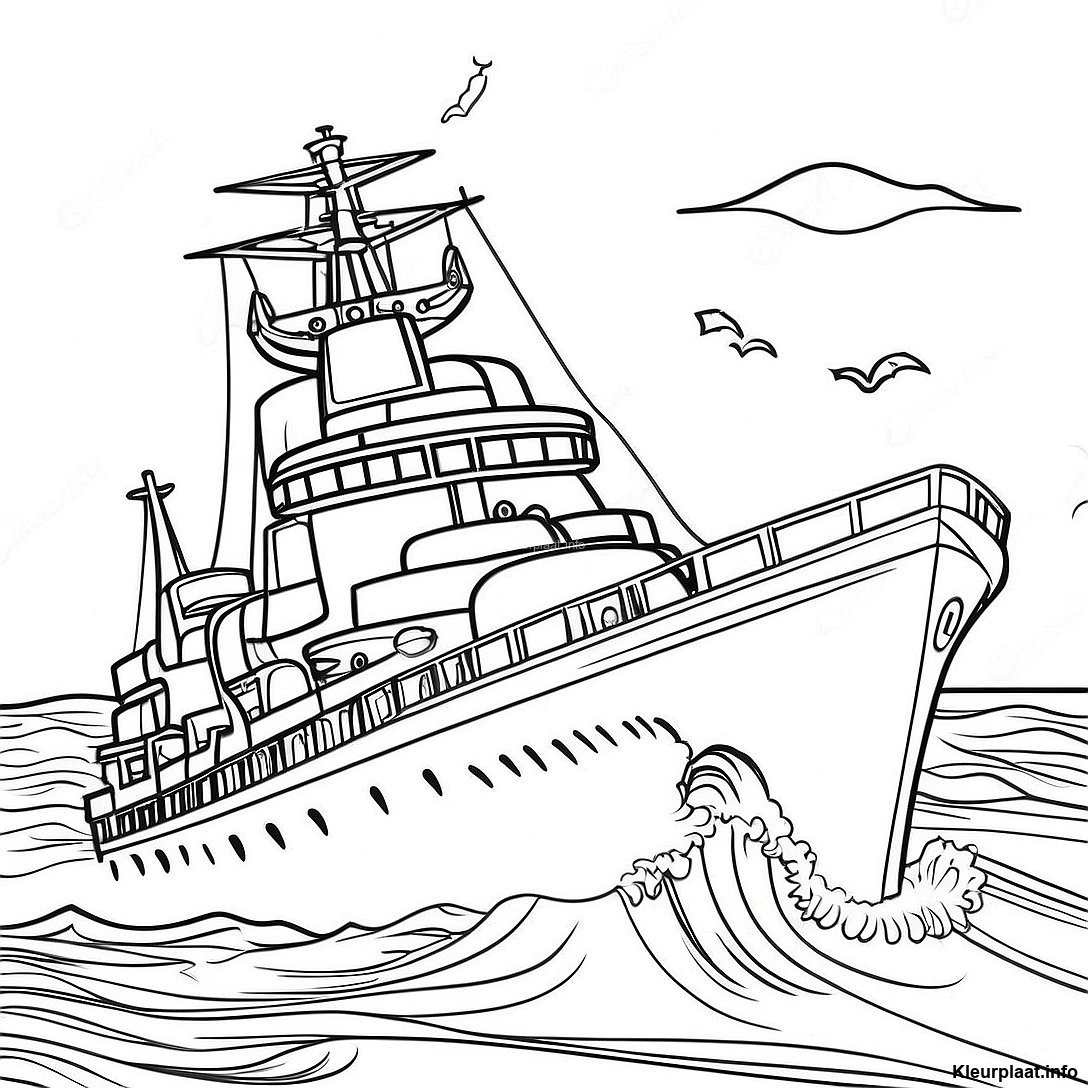 Slagschip In Stormachtig Water Kleurplaat