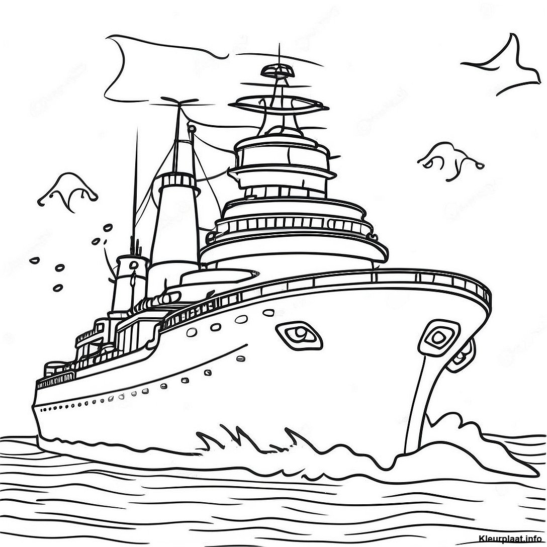 Slagschip In Stormachtig Water Kleurplaat