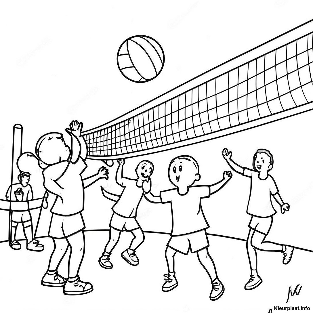 Download Afdrukbare PDF van Spannende Volleybal Wedstrijd Kleurplaat