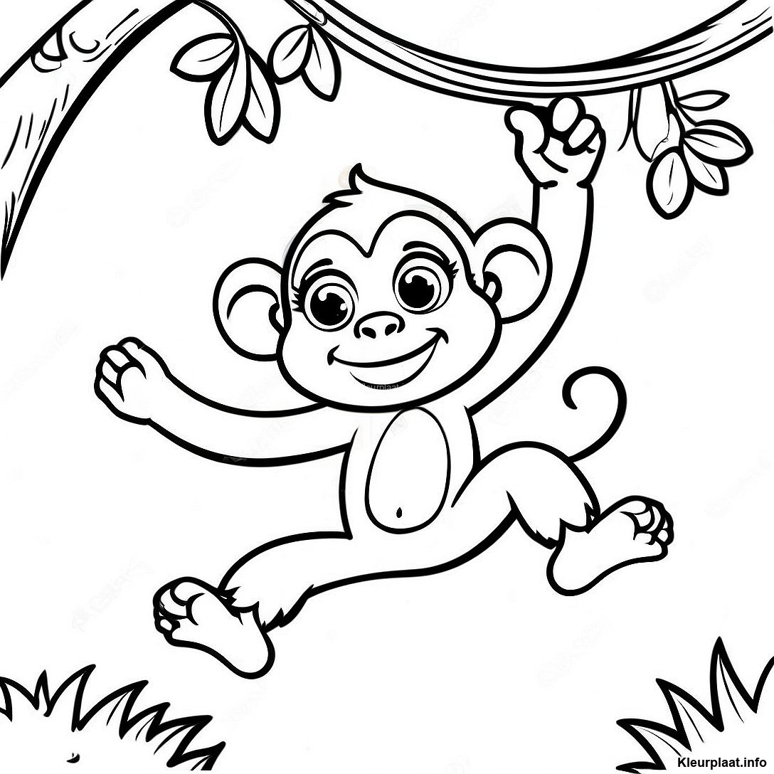 Download Afdrukbare PDF van Speelse Aap Die Aan Bomen Slingert Kleurplaat