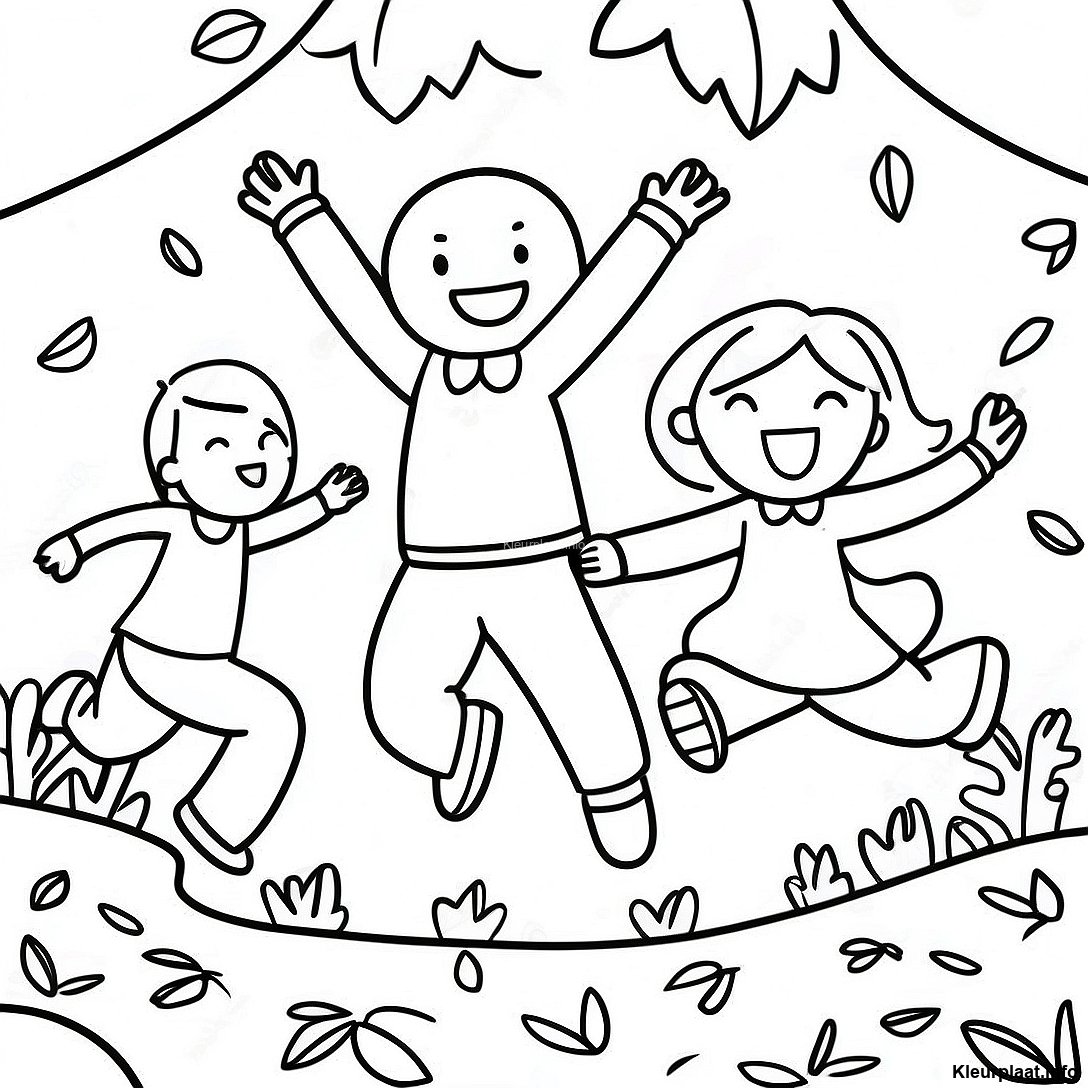 Speelse Kinderen Springen In Bladeren Kleurplaat