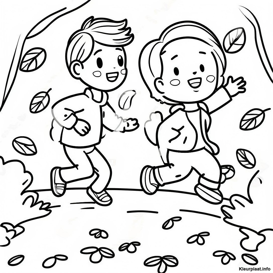 Speelse Kinderen Springen In Bladeren Kleurplaat