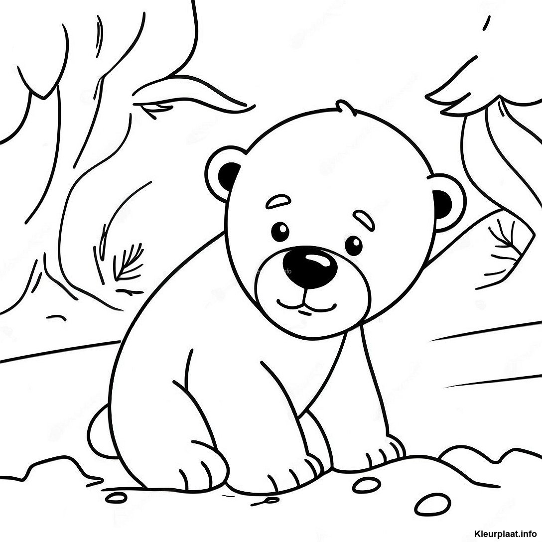 Download Afdrukbare PDF van Speelse Kleurplaat Van Een Ijsbeer Welp Die In De Sneeuw Speelt