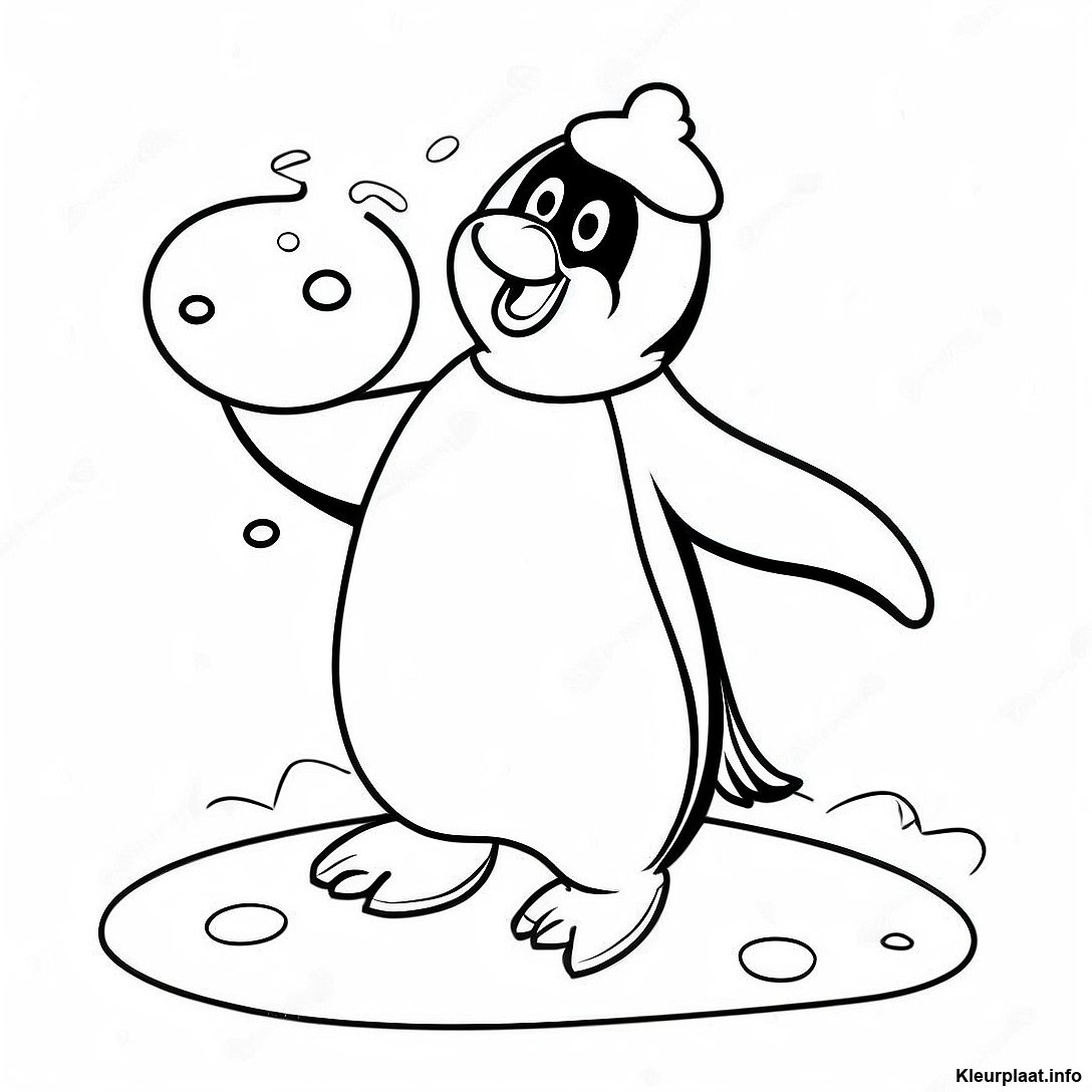 Speelse Pinguin Met Een Sneeuwbal Kleurplaat