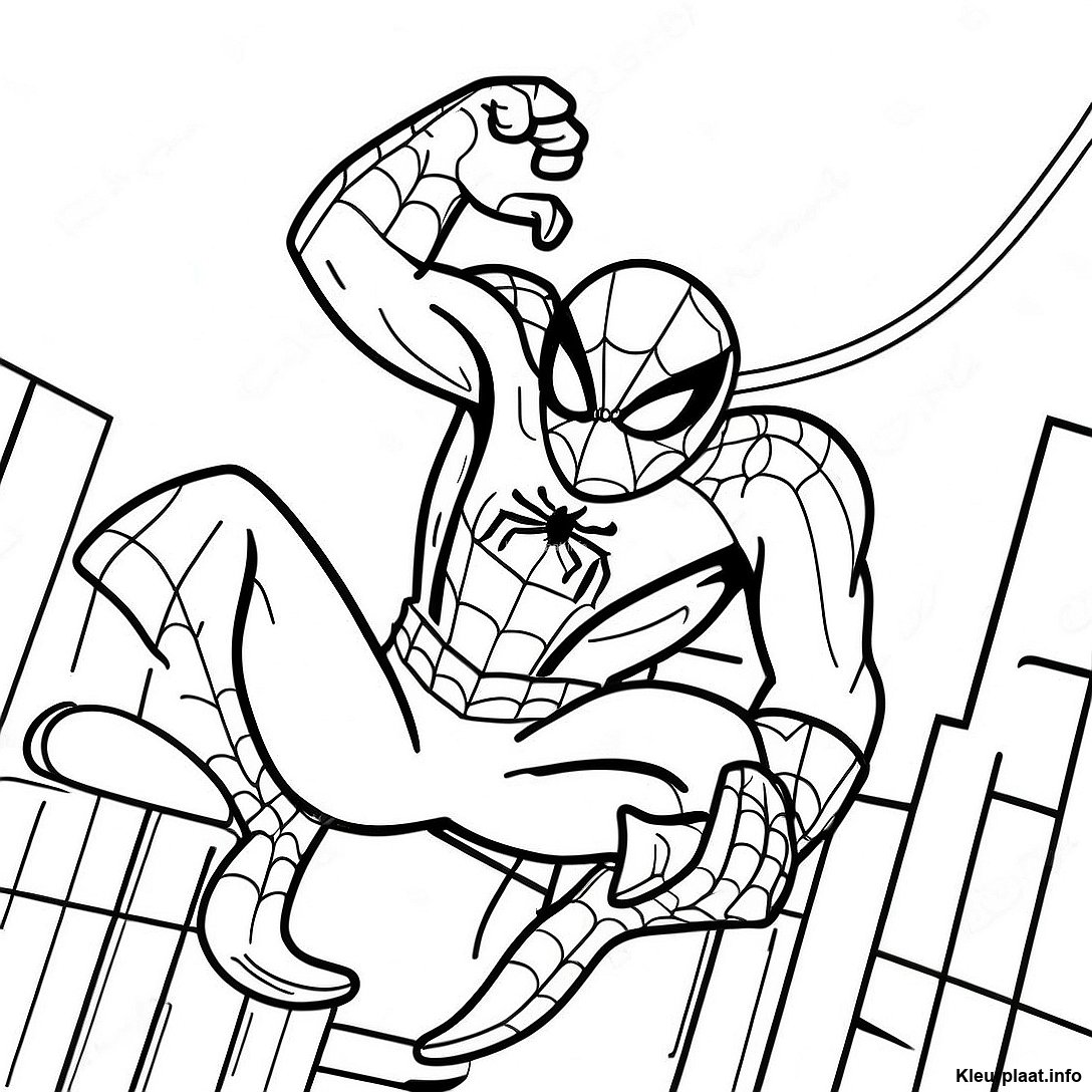 Spider Gwen Slingeren door de Stad Kleurplaat