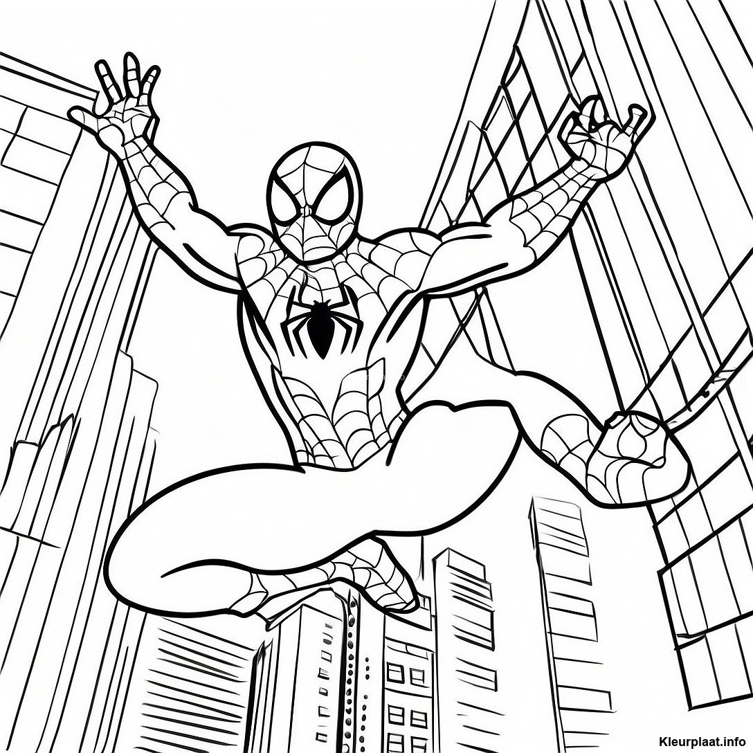 Spiderman Slingeren Door De Stad Kleurplaat