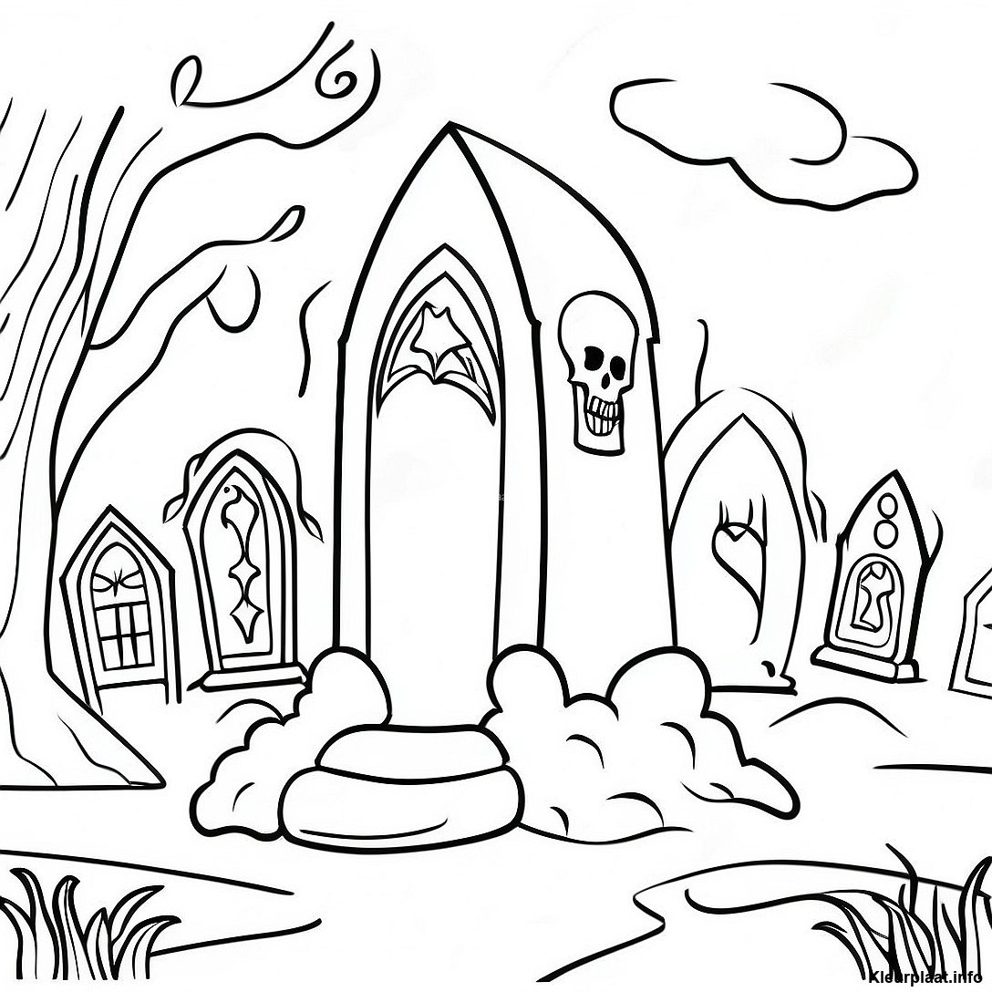 Spookachtige Gothische Begraafplaats Kleurplaat
