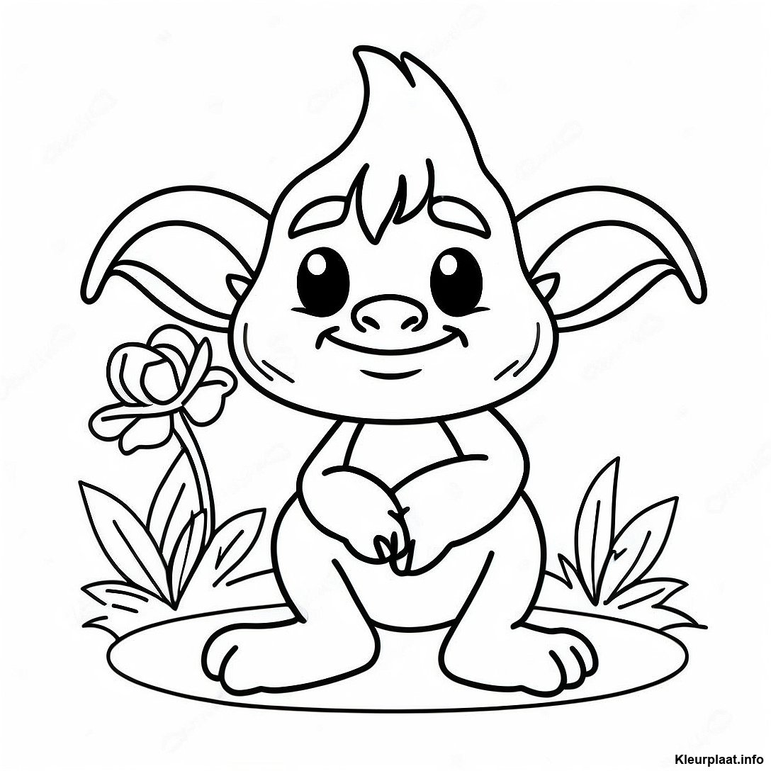 Download Afdrukbare PDF van Stoute Troll Die Met Bloemen Speelt Kleurplaat