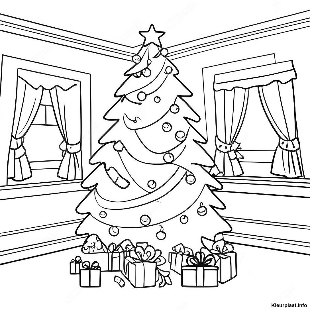 Download Afdrukbare PDF van Versierde Kerstboom Kleurplaat