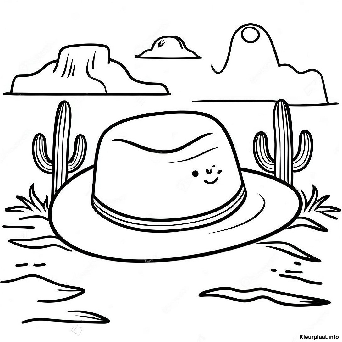 Vintage Cowboyhoed In Woestijnscene Kleurplaat