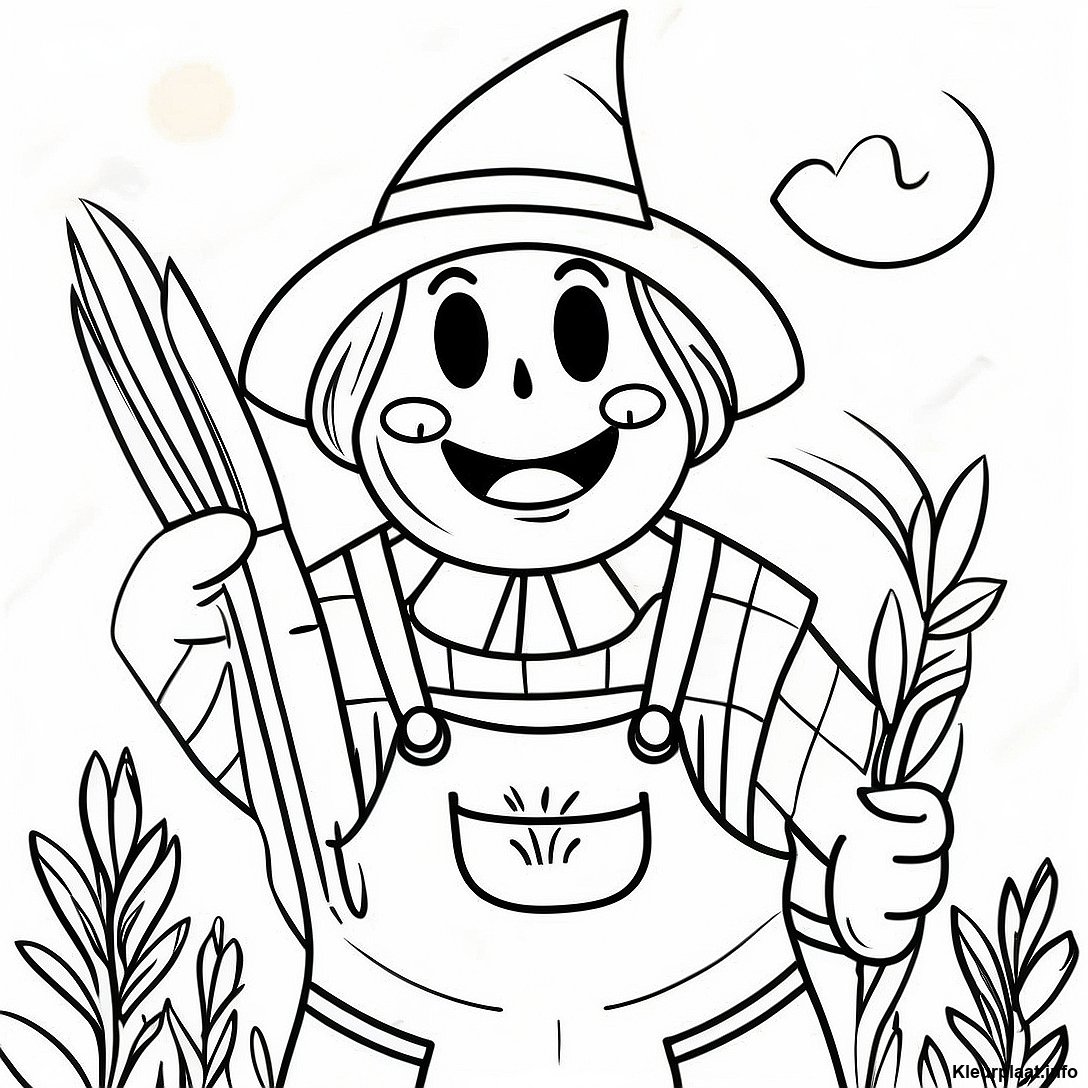 Download Afdrukbare PDF van Vogelverschrikker Met Een Maïskorf Kleurplaat