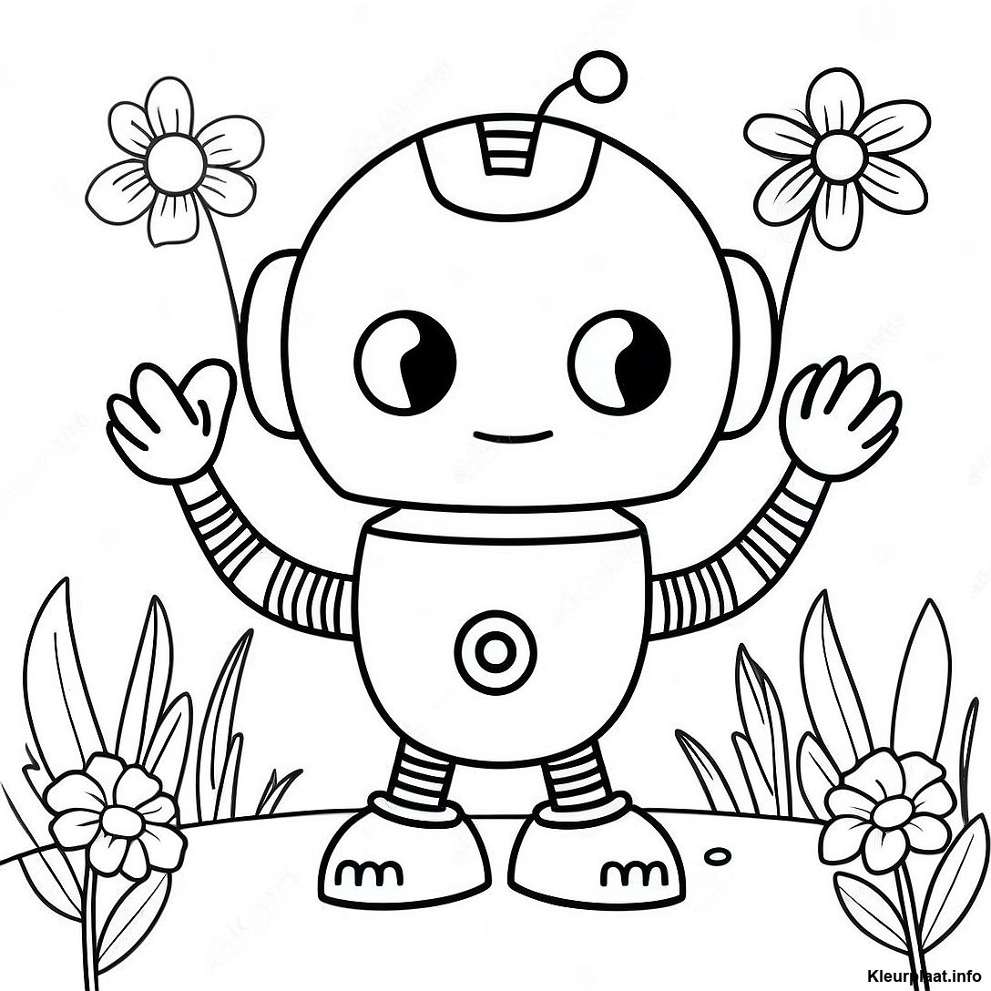 Vriendelijke Robot Met Bloemen Kleurplaat