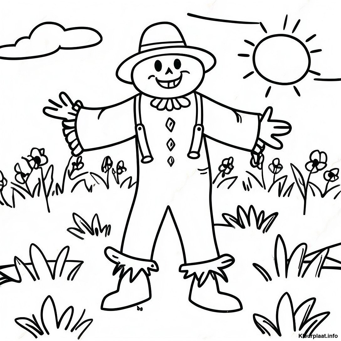 Vriendelijke Vogelverschrikker In Een Zonnig Veld Kleurplaat