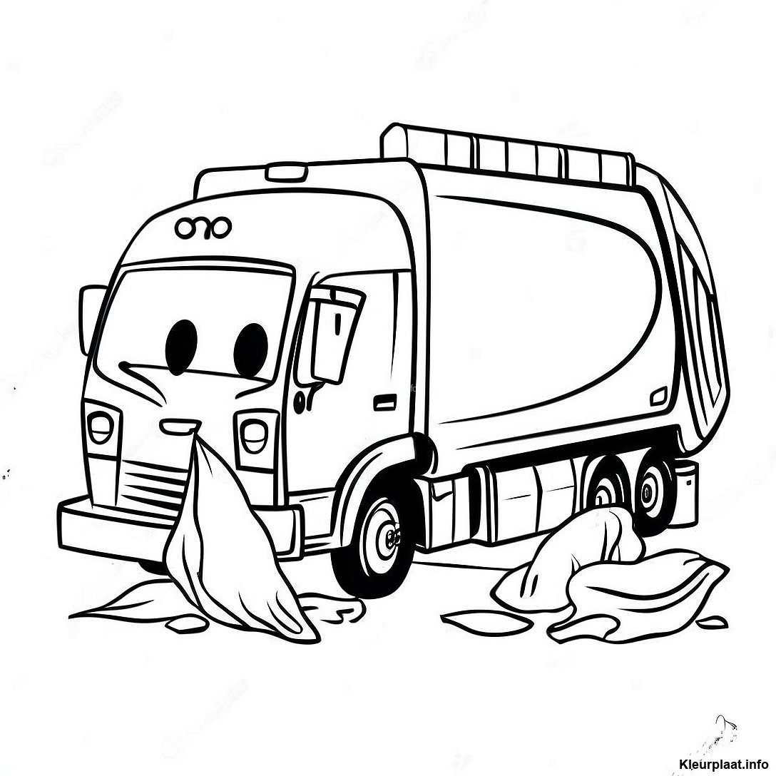 Vriendelijke Vuilniswagen Die Afval Ophaalt Kleurplaat