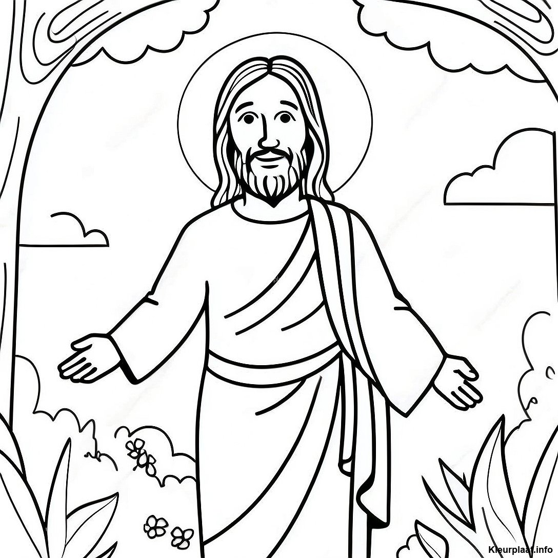 Download Afdrukbare PDF van Vrolijke Jezus In De Natuur Kleurplaat